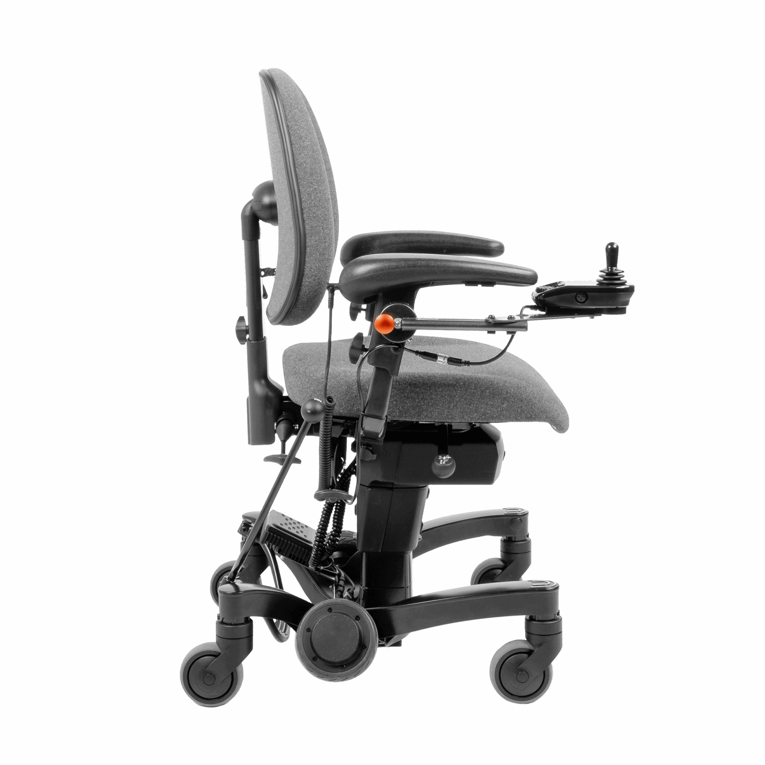 Die kraftvolle, sanft laufende elektrische Höhenverstellung des 700E ist natürlich auch in der Power-Wheels-Version enthalten. Sie hilft beim sicheren Aufstehen, Hinsetzen und Umsetzen – ohne dass Nutzer:innen viel Körperkraft aufbringen müssen.