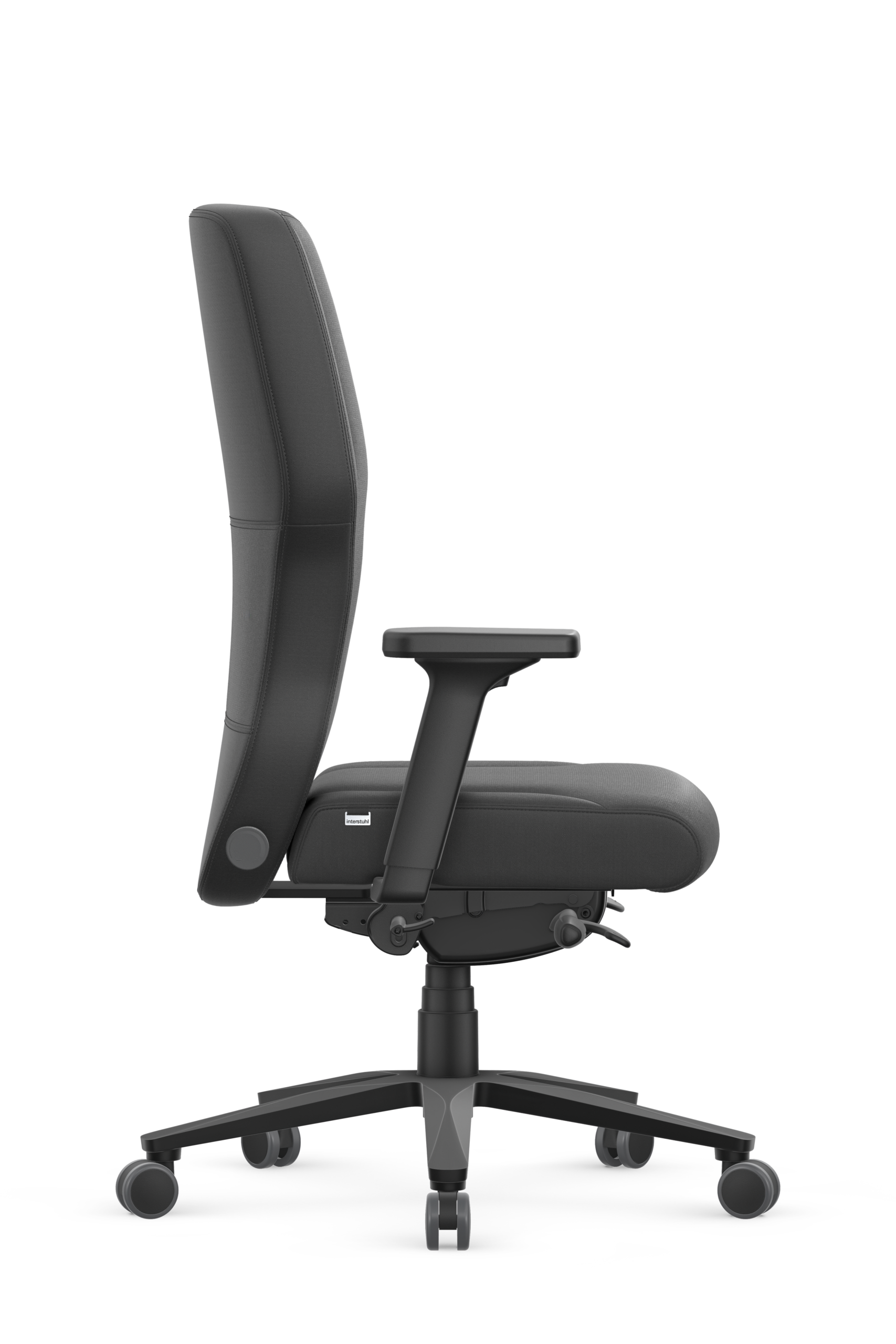 Da ist alles ein wenig größer, stabiler und hochwertiger als es üblich ist. Wie der Name schon sagt: XXXL. Dass dabei, was die Ausstattung angeht, dennoch keine Abstriche gemacht werden müssen – dafür bürgt der Name Interstuhl. XXXL bietet – von der Synchronmechanik über in Höhe, Breite und Tiefe verstellbare Armlehnen bis hin zur stufenlos regulierbaren Lordosenstütze in Air-Pressure-Technologie – alles, was von einem zeitgemäßen Bürostuhl erwartet werden kann.